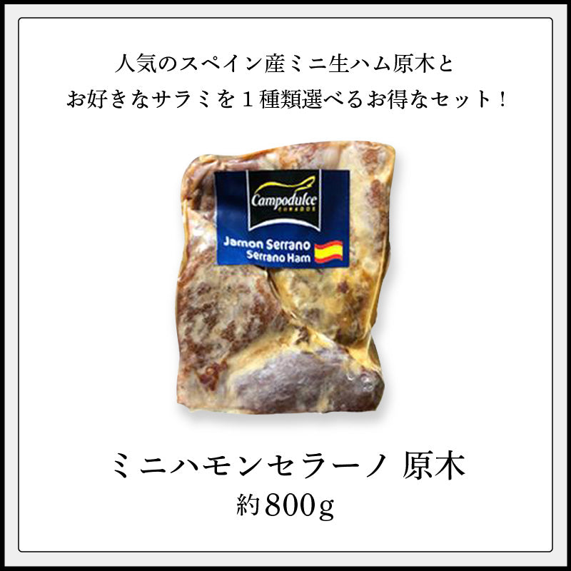 【スペイン産ミニ生ハム原木】ハモンセラーノ 選べるサラミ付きセット ※サラミを必ずお選びください